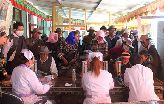 9月25日,西藏阜康醫(yī)藥公司的八名優(yōu)秀醫(yī)護(hù)人員從拉薩出發(fā),在經(jīng)歷了4個(gè)小時(shí)的路程后到達(dá)郭尼村,義診組成員忍受高寒缺氧所帶來的不適,在第一時(shí)間開始了“問診和送醫(yī)送藥活動(dòng)”,義診組根據(jù)村群眾黨員不同的看病需求,帶去了多種藥品免費(fèi)發(fā)給病情需要的牧民。在義診現(xiàn)場(chǎng),醫(yī)務(wù)人員認(rèn)真進(jìn)行檢查,耐心解答他們提出的問題,為他們提出具體的治療方案;醫(yī)護(hù)人員為當(dāng)?shù)啬撩駛儨y(cè)量血壓,并免費(fèi)發(fā)放了家庭常備藥品的各種宣傳資料。讓當(dāng)?shù)啬撩癯浞窒硎艿椒奖憧旖莸娜嬷艿降尼t(yī)療服務(wù),為牧民帶去健康的同時(shí)也帶去了關(guān)愛。