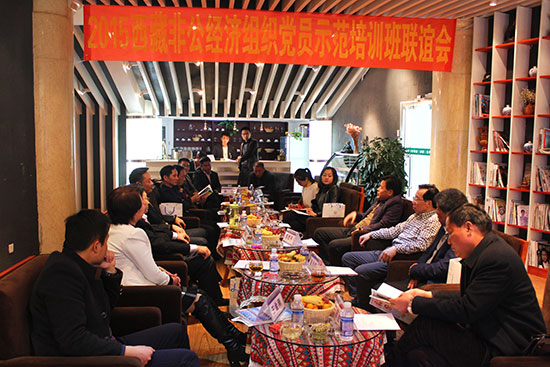 2016年3月25日及3月27日下午,拉薩知名會所企業(yè)座談會及2015西藏非公經(jīng)濟組織黨員示范培訓(xùn)班聯(lián)誼會先后在西藏阜康(國際)健康體檢中心咖啡廳舉行。拉薩各知名會所企業(yè)代表、2015西藏非公經(jīng)濟組織黨員示范培訓(xùn)班成員:西藏阜康醫(yī)藥發(fā)展有限公司總經(jīng)理、黨委紀檢委員陳彬,西藏阜康醫(yī)藥發(fā)展有限公司黨支部青年委員、董秘李霞,西藏雅喜實業(yè)公司黨支部副書記、董秘雷滿興,拉薩遠大建材有限公司支部副書記周西平,拉薩市城關(guān)區(qū)億鑫廢舊回收有限公司黨支部書記李曉飛,江蘇商會常務(wù)理事梁鉅松,拉薩市申新商貿(mào)有限公司董事長趙萬才,星宇通訊器材有限公司黨支部書記王金剛,西藏華鈺礦業(yè)集團黨委副書記劉志峰,西藏浙江商會黨支部書記陳炬亦,西藏蓋天力機械有限公司總經(jīng)理王東勝,西藏百益大酒店總經(jīng)理、法人代表曹光亮,拉薩鼎業(yè)制粉有限公司副總經(jīng)理郭倩,西藏泰成餐飲有限公司黨支部負責人孫宏霞,西藏易境旅游景觀設(shè)計有限公司黨支部書記李川及我院扎西頓珠副院長,敖德秀副院長、黨委專職副書記,張治副院長,各醫(yī)院辦公室主任等先后參加了兩次會議。