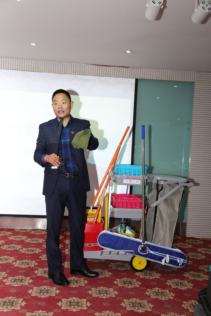 隨后,陳總運用圖文并茂的方式,對后勤管理各班組工作內(nèi)容展開了詳細全面的培訓(xùn),包括倉庫管理、保潔六步工作法、各類區(qū)域的打掃方法、維修組接報修管理、常規(guī)設(shè)備操作規(guī)程、安全作業(yè)管理以及保安組崗位要求、設(shè)備準備情況和秩序維護等內(nèi)容。