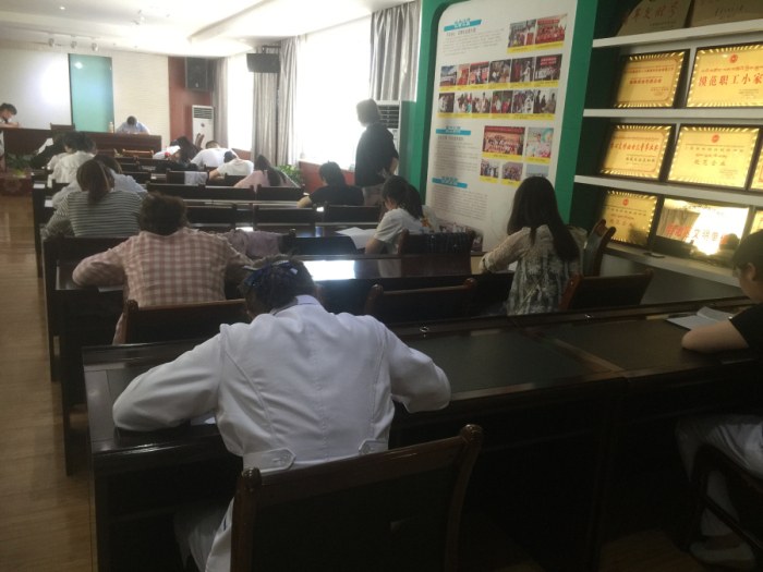 本季度操作考試采取現(xiàn)場抽簽,以“三選一”的形式分別對:女性患者導(dǎo)尿術(shù)、簡易呼吸氣囊的使用及心電監(jiān)護(hù)儀的使用三大項(xiàng)目進(jìn)行了考核,并由各科室護(hù)士長擔(dān)任本次考核的監(jiān)考人,三人為一組,保證了考試的嚴(yán)謹(jǐn)性、公平性。