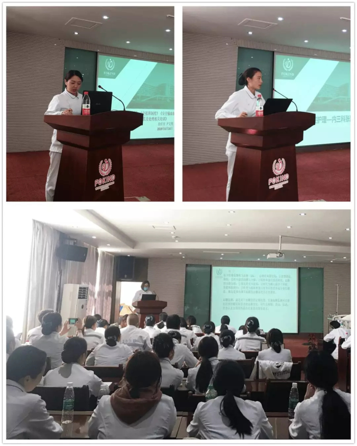 6月19日下午,在院長助理、護(hù)理部主任李麗的指導(dǎo)下,我部組織了阜康醫(yī)院共62名護(hù)理人員在阜康婦產(chǎn)兒童醫(yī)院四樓會議室開展了以“口腔護(hù)理”、“血糖監(jiān)測”、“查對制度、交接班制度、安全輸血制度、護(hù)理糾紛防范及處理”的相關(guān)培訓(xùn)。內(nèi)三科護(hù)士長張穎結(jié)合科室遇到的口腔護(hù)理操作,針對口腔護(hù)理用物準(zhǔn)備、口腔護(hù)理的適應(yīng)癥、常用溶液的作用、口腔護(hù)理的操作流程等方面進(jìn)行了講解;外二科護(hù)士長陳群就血糖監(jiān)測結(jié)合臨床經(jīng)驗針對血糖監(jiān)測的目的,操作流程及對糖尿病患者的健康宣教進(jìn)行講解;治療室護(hù)士長尹文雋在講解制度中再三強調(diào)我們護(hù)理操作中要時刻銘記“患者需求至上”的核心價值觀,做到患者安全、護(hù)理安全,全心全力為患者服務(wù)。